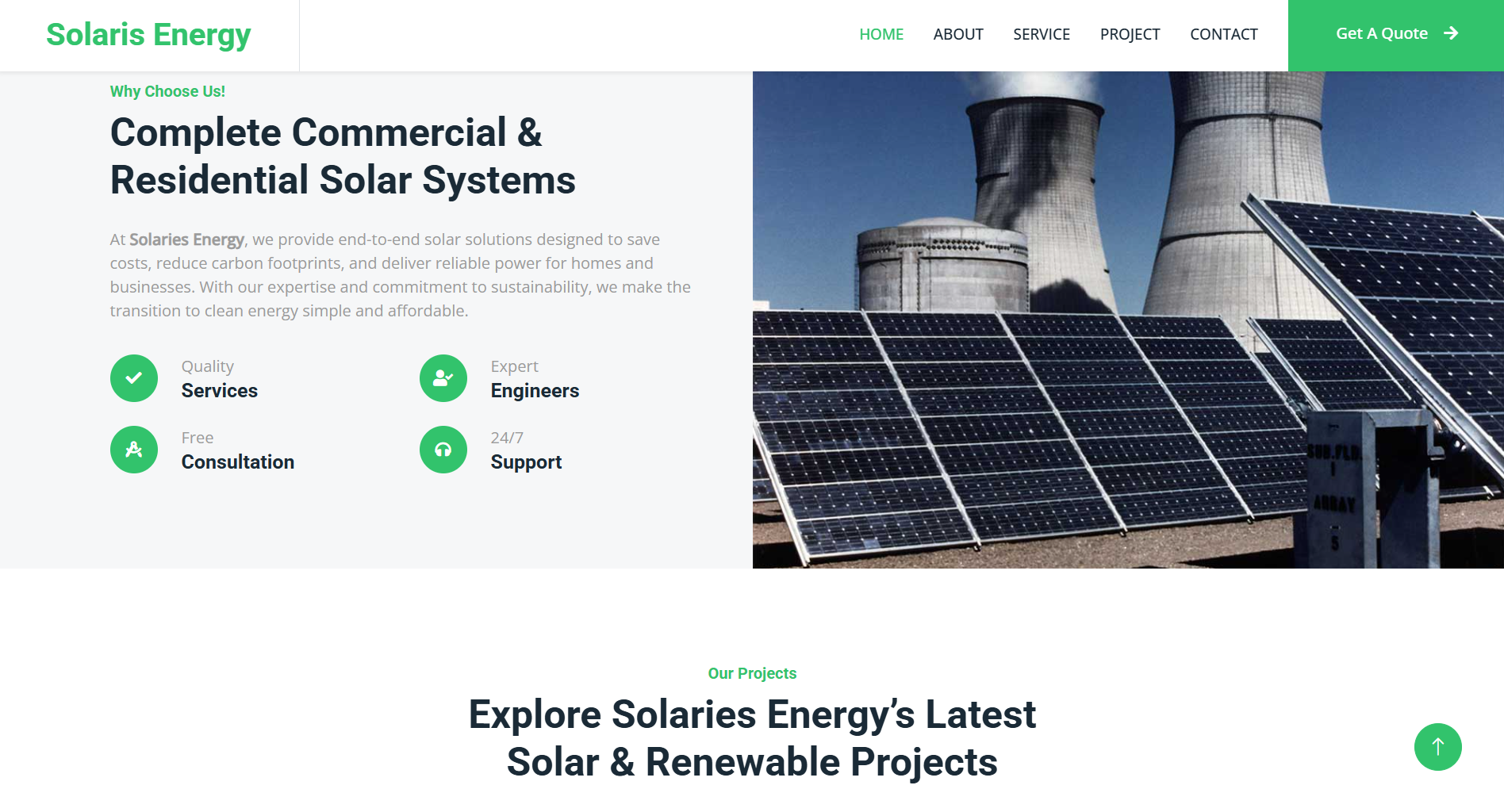 The Solaries Energy Website Template is a modern and responsive solution for renewable energy businesses. It helps solar, wind, and hydropower companies present their services clearly and professionally. The design uses strong visuals, smooth animations, and simple navigation. As a result, visitors can quickly understand your offerings and take action.