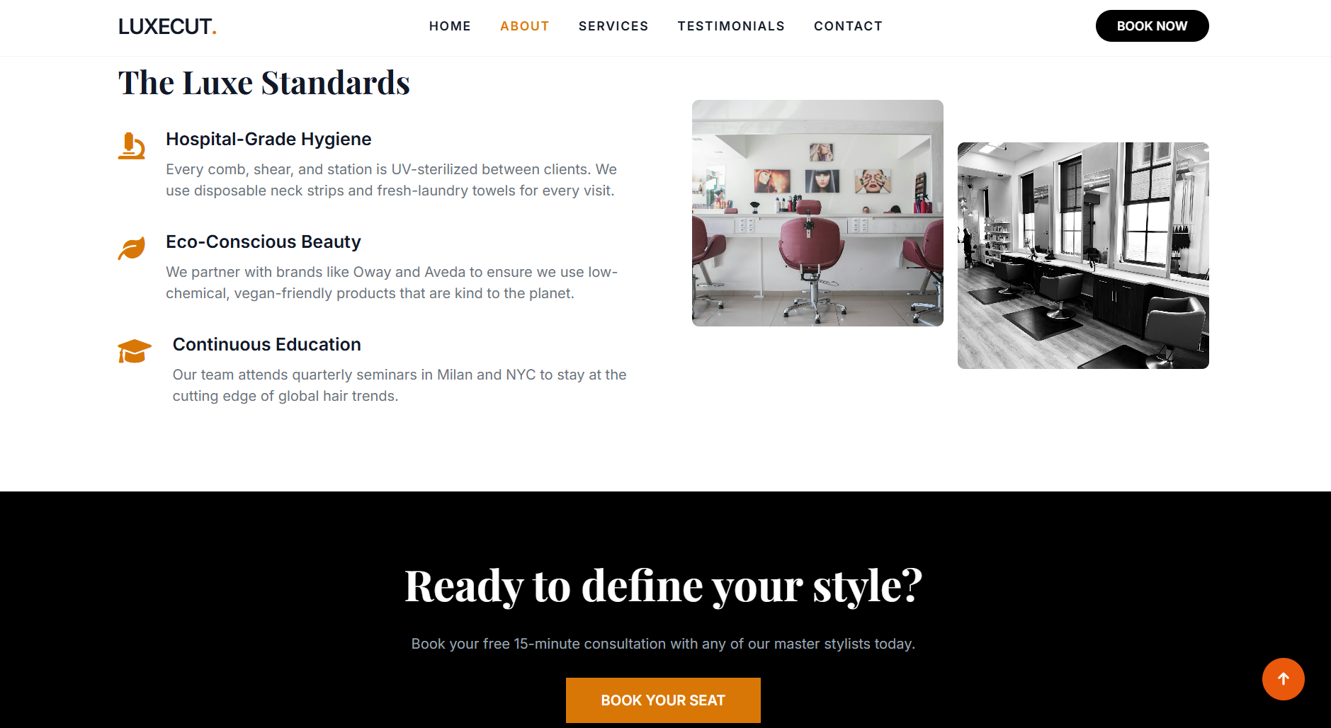 Luxecut Salon Template is a high end luxurious multi page web template for a High, end Unisex Salon (localized into Indian). These templates are built for a “long, scroll” experience, required to build trust and show off luxury brands large menu of services.