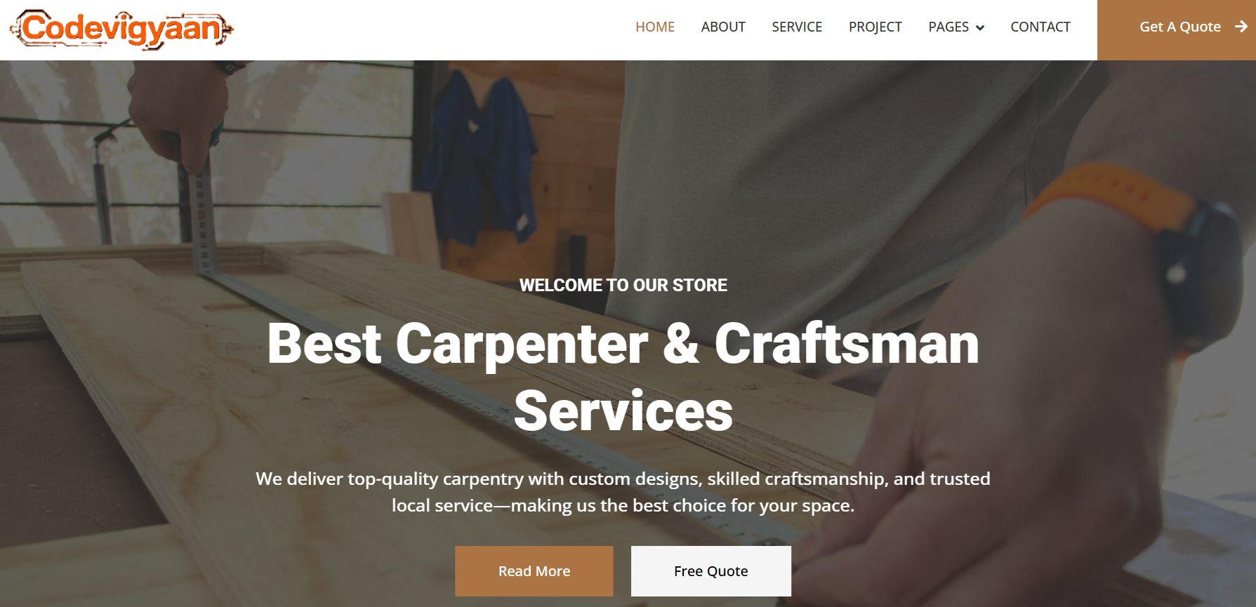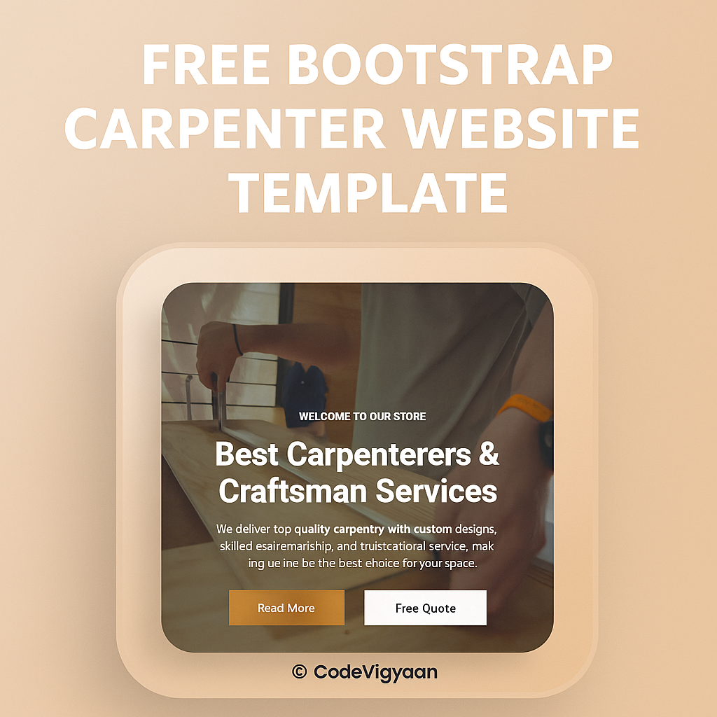 This carpenter website theme is a seamless blend of craftsmanship and code—designed to reflect the precision, warmth, and reliability of woodworking professionals. Built on a solid front-end stack of HTML5, CSS3, Bootstrap 5, and JavaScript, it offers a responsive, visually engaging experience across devices.