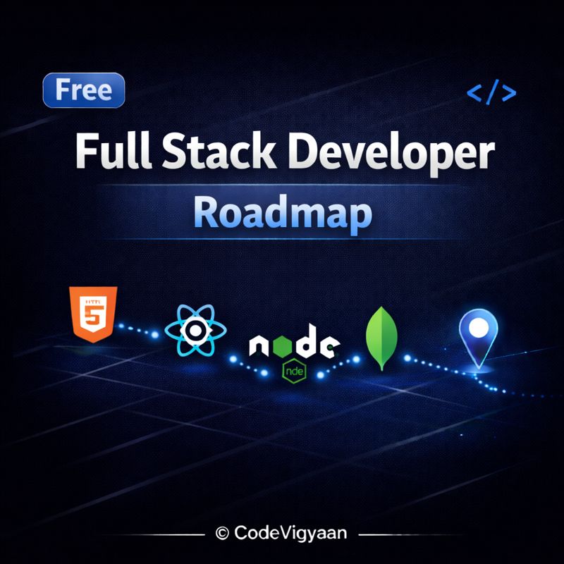 The Free Full Stack Developer Roadmap by CodeVigyaan is created to solve this problem by providing a step-by-step, beginner-friendly, and industry-aligned learning path, completely free of cost.
