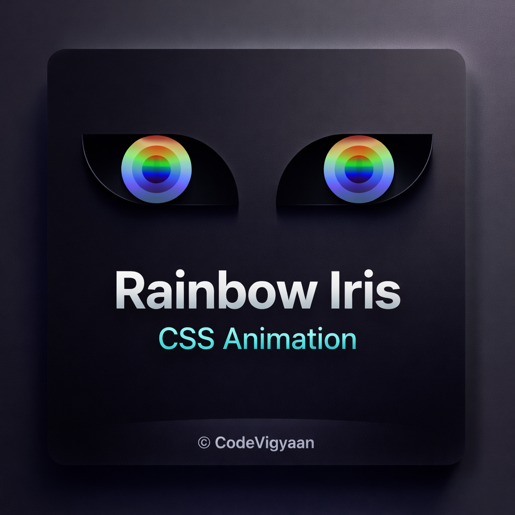 Rainbow Iris CSS Animation is a creative and modern eye animation built using only HTML and CSS. The animation displays colorful rainbow-style irises with smooth and natural movement, creating a futuristic and eye-catching visual effect. This project shows how powerful CSS animations can be when used with clean design and smart styling.